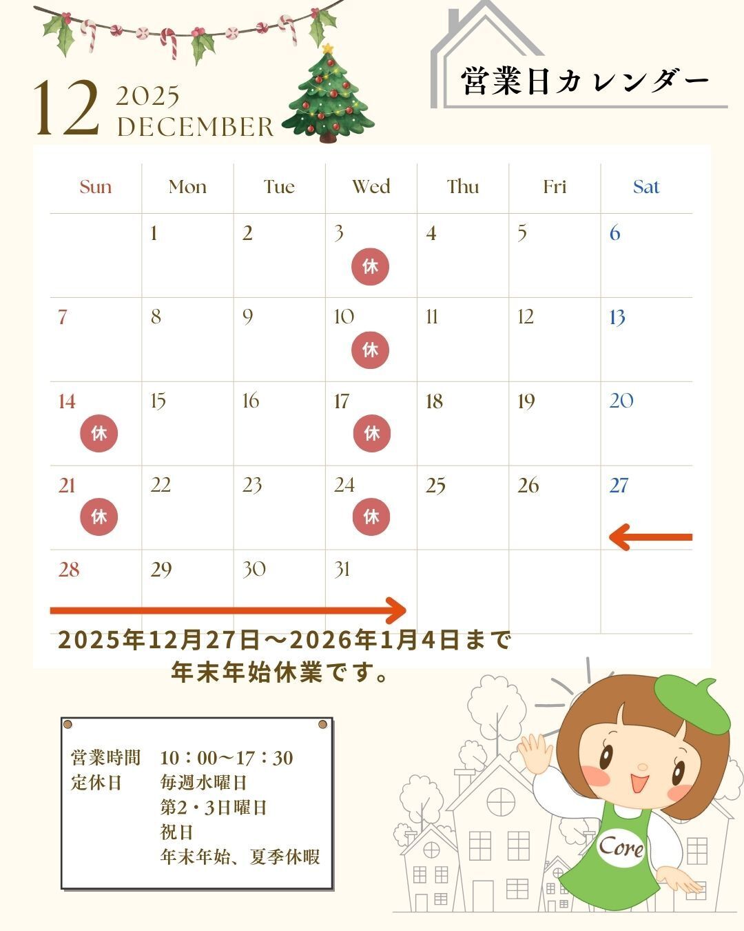 2025年12月営業カレンダー