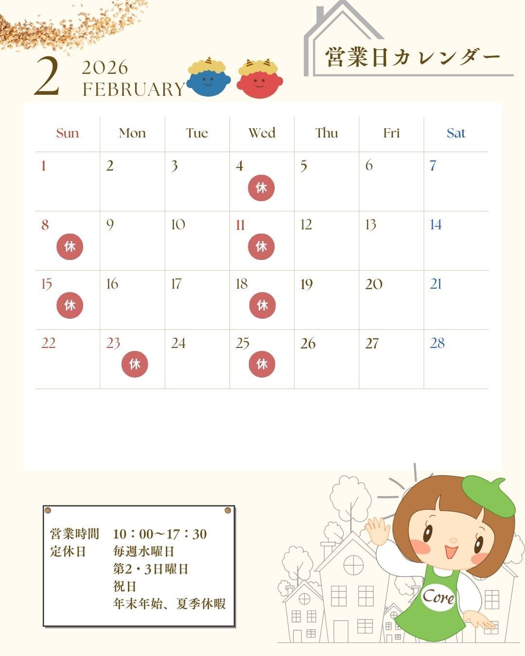 2026年2月営業カレンダー